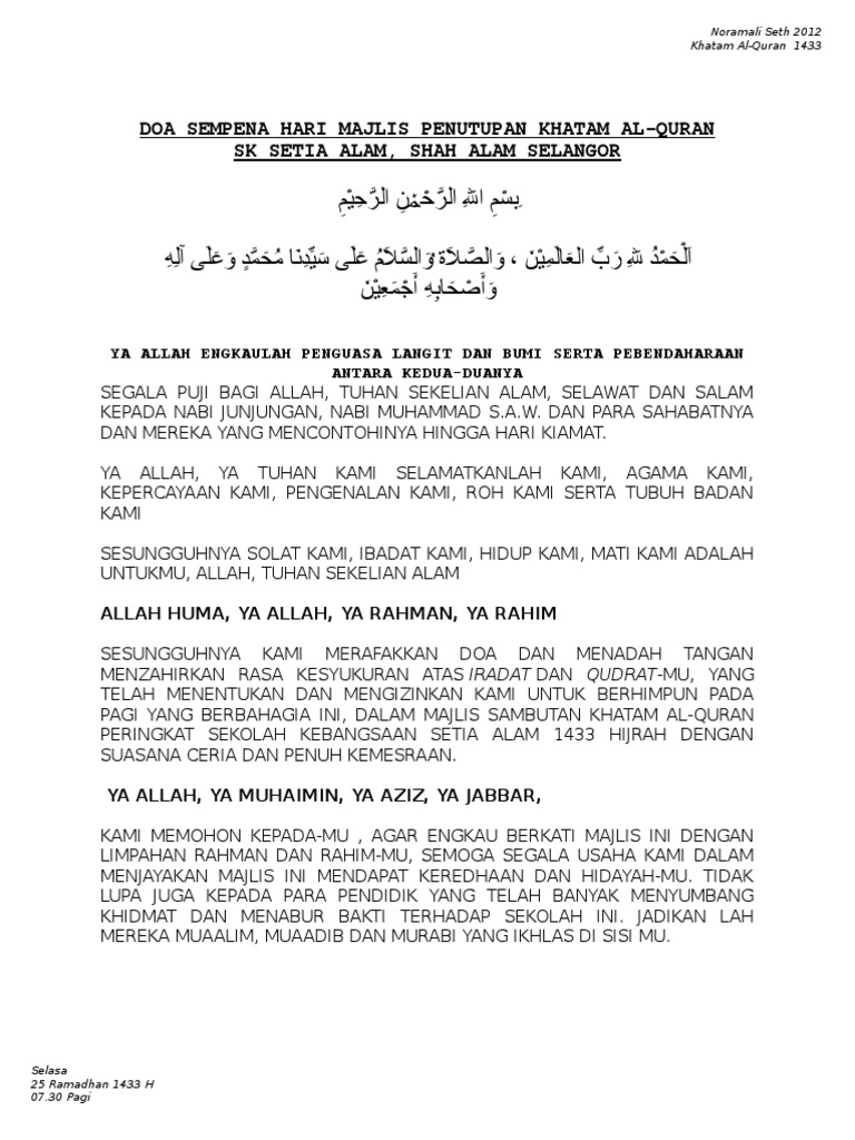 Doa Khatam Quran Lengkap Pdf / Sunan drajat atau raden qasim syarifuddin sunan kudus atau raden ja'far shadiq sunan giri atau raden paku atau muhammad 'ainul yaqin atau prabu satmata sunan kalijaga atau raden syahid sunan muria atau raden umar said sunan gunung jati atau syarif hidayatullah sunan gresik (maulana malik ibrahim) sunting sumber artikel utama:. We would like to show you a description here but the site won't allow us. Bab wajib berpuasa ramadhan karena melihat hilal dan berbuka karena melihat hilal dan jika tertutup awan pada awal berpuasa atau akhir berpuasa, maka disempurnakan hitungan bulan menjadi tiga puluh hari Membaca doa sesudah mengaji seperti yang telah dijelaskan sebelumnya. Click to see our best video content. May 16, 2012 · nama ebook: